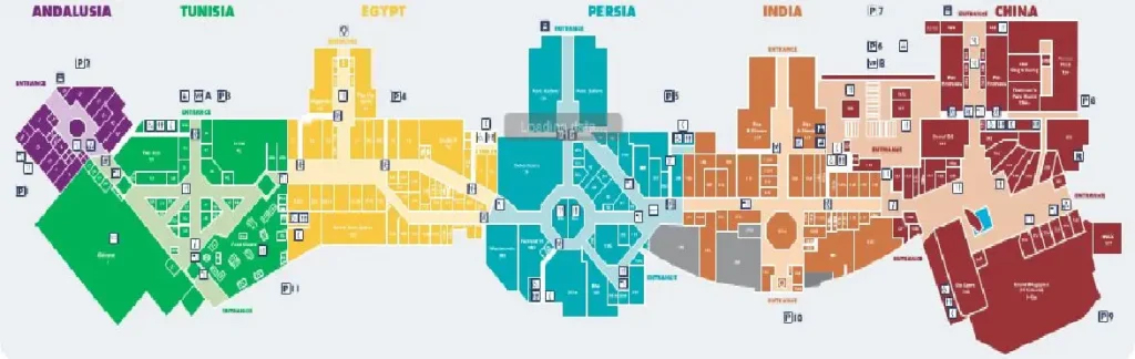 이븐 바투타 몰은 셰이크 자이드 로드를 따라 아부다비로 가는 길목에 위치한 쇼핑몰입니다. 디벨로퍼인 나킬이 만든 이븐 바투타 몰은 2005년에 개장해 올해로 개장 20주년을 맞이한 쇼핑몰로 중세 모로코의 위대한 탐험가로 유명한 이븐 바투타의 이름을 딴 쇼핑몰 답게 UAE에서 보기드문 세계여행 컨셉을 따 그의 여정을 따라 차이나 코트, 인디아 코트, 페르시아 코트, 이집트 코트, 튀니지 코트, 안달루시아 코트 등 여섯개 구역으로 나뉘어진 테마 쇼핑몰입니다.