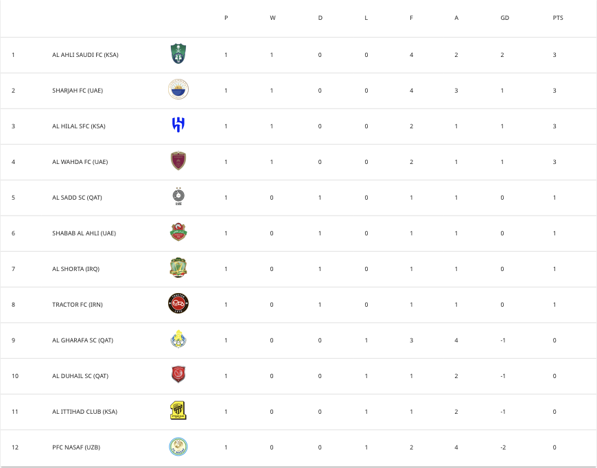 5) 샤밥 알아흘리와 트락토르의 경기에서는 길헤르메 빌라의 만회골로 1대1 무승부에 그치며 승점 1점씩을 주고 받았다.