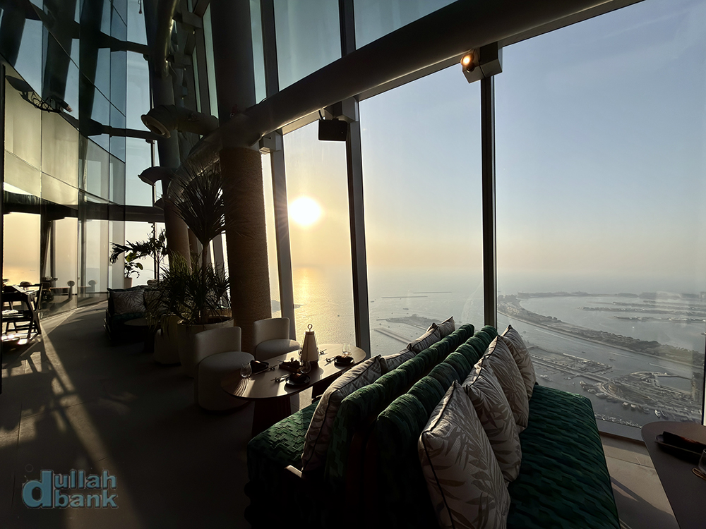 직원의 안내를 받아 미나 세야히, 두바이 하버, 팜 주메이라의 뷰를 즐길 수 있는 자리를 배정받았습니다.
