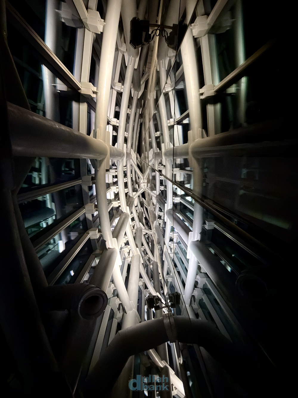 밤이 되어 조명이 켜졌을 때 위를 올려다보면 공기 흐름 제어 및 바람 저항 최소화를 고려한 비대칭적 설계를 극적으로 볼 수 있는 곳이기도 합니다.