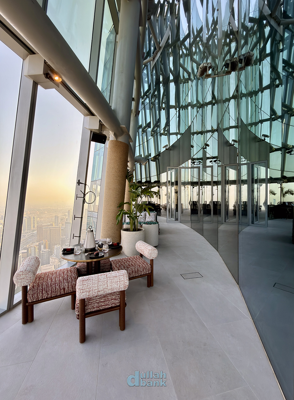 라운지의 전면뷰인 아라비안 걸프와 후면뷰인 에미레이트 힐스, JLT는 좀더 공간에 여유가 있어 다인석 소파를 포함해 높이가 낮은 테이블과 의자가 세팅되어 3명 이상의 손님이 이용할 수 있고,
