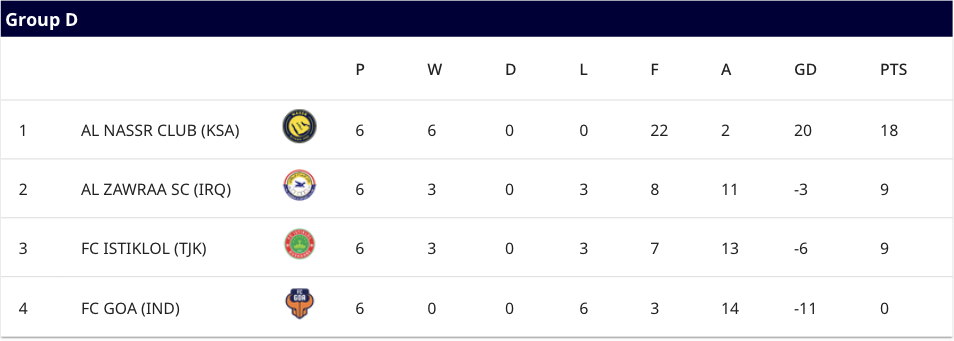 D-1) 5연승으로 조1위를 확정지은 알나스르와 이스티크롤이 압승을 거두지 않으면 골득실에서 앞서 조2위를 노릴 수 있는 알자우라아의 경기에서는 웨슬레이의 결승골을 앞세운 알나스르가 이브라힘 그바다모시가 한 골을 만회하는데 그친 알자우라아를 5대1로 격파하고 6전 전승 조1위로 16강에 진출했습니다. 5라운드까지 출전하지 않았던 호날두는 리그 재개를 앞두고 경기 감각 회복 차원에서 선발 출전하여 전반전만 뛰면서 1어시스트를 기록했습니다. 한편, 알자우라아는 큰 점수차 패배에도 이스티크롤이 1점차 승리를 거두면서 조2위로 16강에 진출하게 되었습니다.