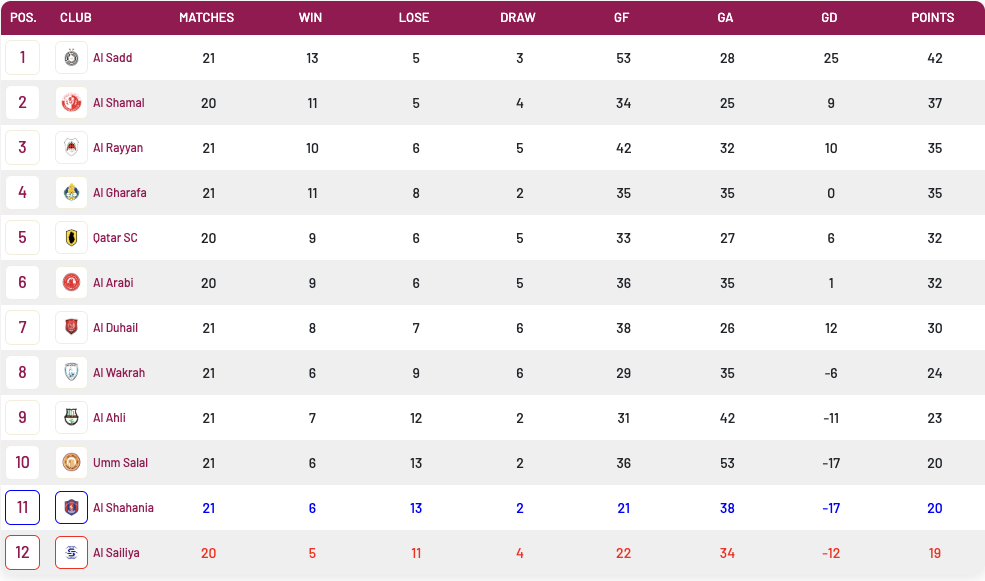 8) 선두 알사드와 한 경기를 덜 치른 알샤말의 승점차가 5점으로 벌어진 가운데, 두 팀이 최종 22라운드에서 맞붙기에 다음주에 열릴 알샤말과 카타르의 17라운드 경기 결과가 더욱 중요해지게 되었습니다. 알샤말이 카타르와의 순연 경기에서 이길 경우엔 승점차가 2점차로 좁혀지면서 알사드와의 맞대결이 리그 챔피언 결정전이 되고, 지거나 비길 경우엔 알사드가 자동으로 리그 3연패를 확정짓게 됩니다.